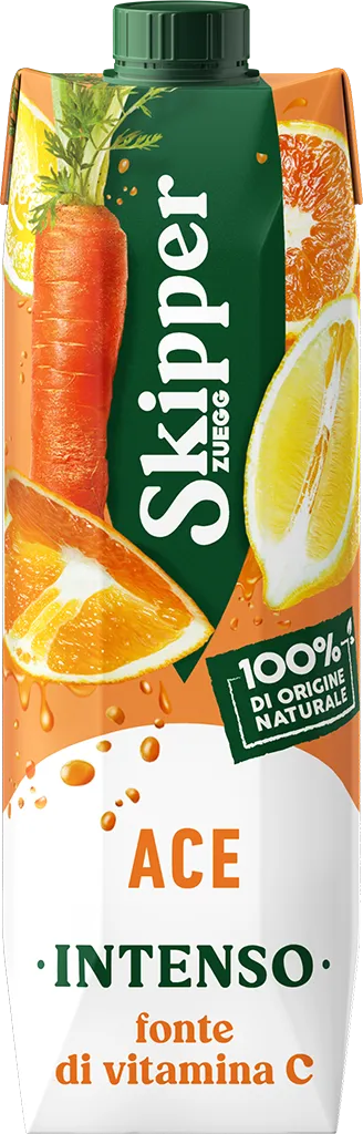 Contenuto di frutta e vegetali: 30%. Acqua, succo di arancia da concentrato (19%), zucchero, succo di carota da concentrato (5,3%), succo di limone da concentrato (4,1%), succo di acerola da concentrato, acidificante: acido citrico, aromi naturali, vitamina E, beta-carotene, (provitamina A). SENZA GLUTINE